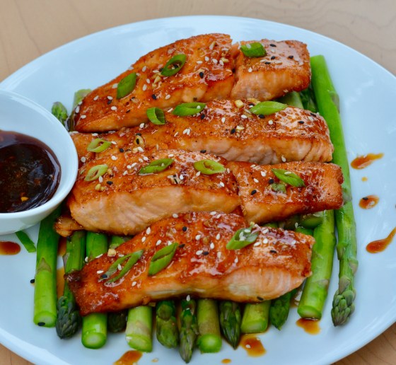 Remove salmon to a plate. Remove any oil left in the skillet with paper towels. Add Honey Garlic Sauce to pan. Bring to a boil and cook 1-2 minutes or until sauce slightly thickens. Sauce will get thicker as it cools. If it gets too thick, thin by adding 1 teaspoon of water at a time. Plate salmon. Drizzle with sauce. Garnish: Sprinkle with sesame seeds and sliced green onions. Enjoy!