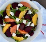 Beet Salad with Beet Greens, Roasted Beets, Goat Cheese, Orange Segments and Orange Shallot Vinaigrette