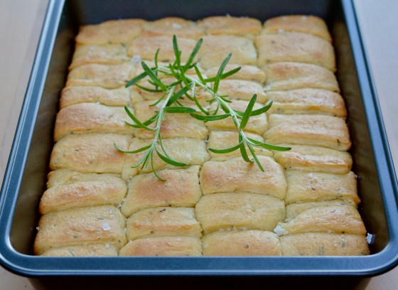 Who can resist tender, melt-in-your mouth, Parker House rolls? These rolls taste extra buttery with the addition of butter flavored shortening. Rosemary makes the rolls savory and they go perfect with prime rib, filet, pork tenderloin, or turkey. Sprinkled with a little Maldon finishing salt these rolls are irresistible.