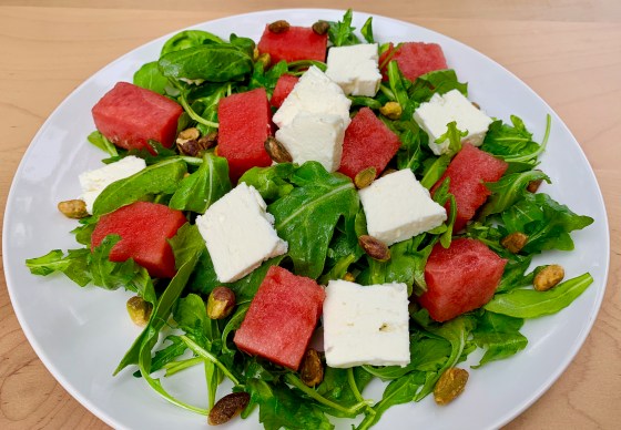 Watermelon, Arugula, Feta, and Pistachio Salad