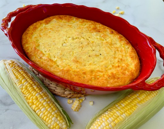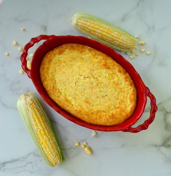 This recipe for Corn Pudding is not overly sweet and uses two textures of fresh corn; pureed and crisp kernels. The custard that holds it all together is both fluffy and creamy. It is the perfect side dish to go with any meal. Enjoy!