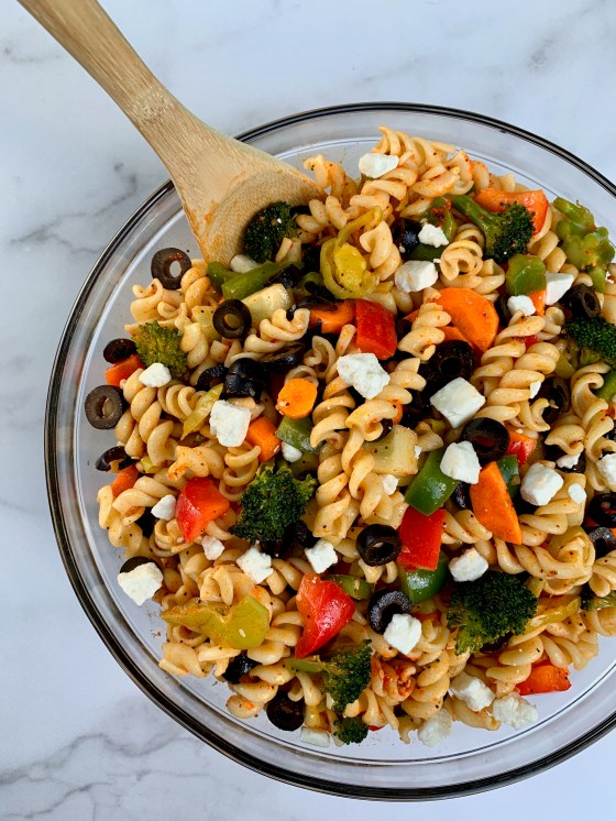 This time of year, with camping, picnics, and barbeques to attend it is a good idea to have a “go to” pasta salad recipe in your recipe box. I like this recipe because it makes a large quantity and is cold. Perfect for a hot summer day. The recipe can be adjusted it to meet your family’s personal preferences. An added bonus is you don’t have to have a lot of spices on hand since you use McCormick’s Salad Supreme.
