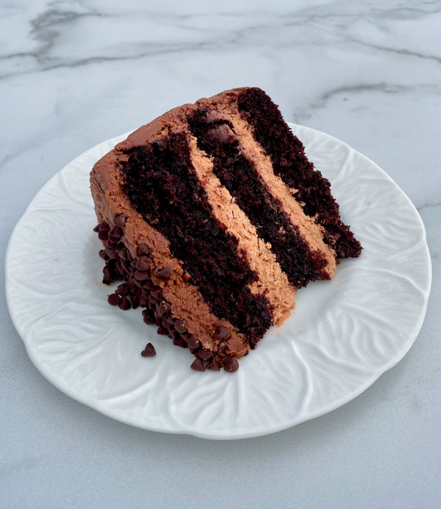Chocolate Cake with Chocolate Mousse Raspberry Filling and Chocolate Buttercream Icing