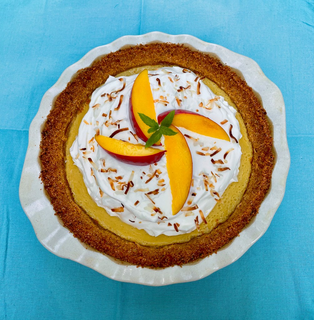 This recipe takes me straight to the Caribbean Islands. I feel the warmth of the sunshine and see palm trees swaying in the breeze. The ocean is a gorgeous turquoise blue. All I need to complete this picture is a cold slice of Mango, Coconut, Key Lime Icebox Pie and a Tiki drink! Enjoy!