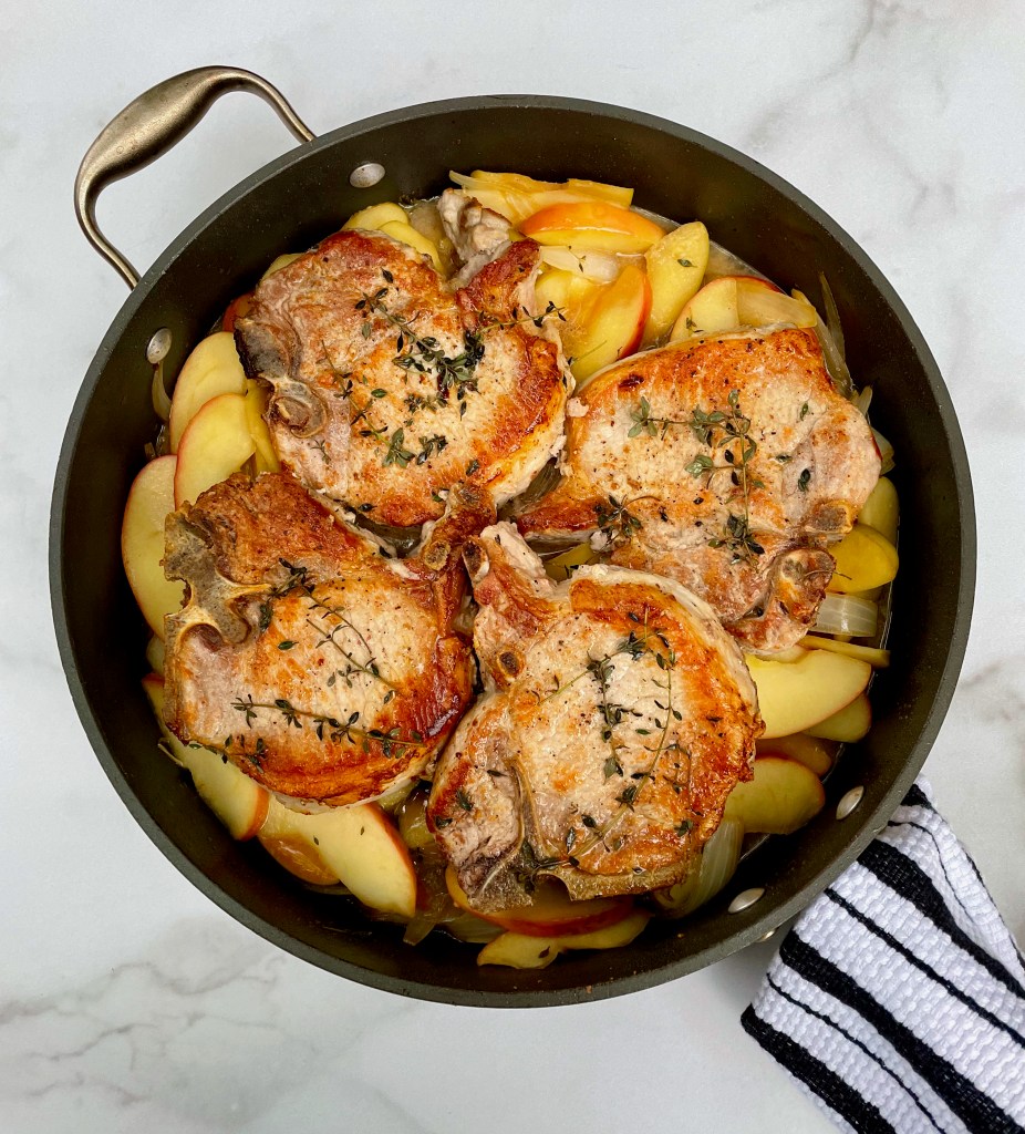 Pan Seared Cork Chops with Apples and Onion are loaded with fall flavor. I really like pan searing pork chops because they stay moist and don’t dry out. My children love this recipe. Enjoy!