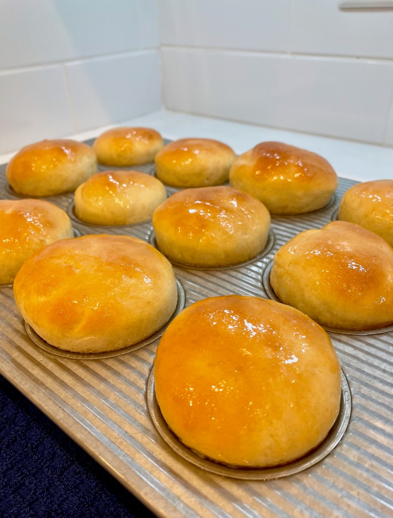Preheat oven to 350ºF. Bake 15-20 minutes until golden brown or temperature is 190ºF. Remove rolls from oven and brush with melted, salted butter. Tip: For lactose free rolls use water in place of milk. Makes 12 rolls. Happy Baking!