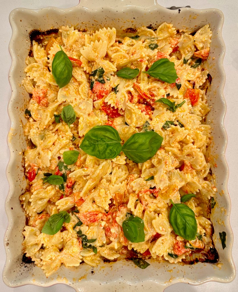 This recipe has been a tick tock sensation for a while. The recipe originated in Finland. For a creamy sauce, make sure to purchase feta cheese made from sheep’s milk. Feta cheese made from cow’s milk is crumbly and has a sour taste. Don’t be tempted to add more pasta than 10 ounces. You won’t have enough sauce!