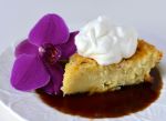 Coconut Egg Custard Pie with Jamaican Rum Sauce and Whipped Cream
